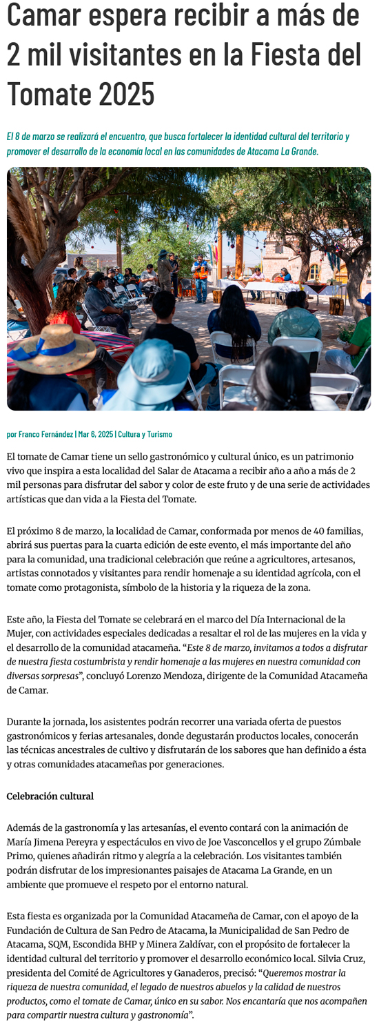 Camar espera recibir a más de 2 mil visitantes en la Fiesta del Tomate 2025 - (antofagastaonline.cl)