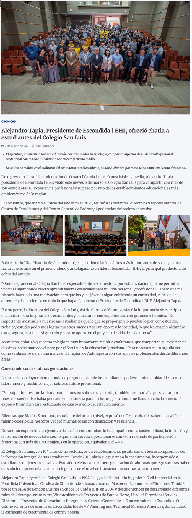 Presidente de Escondida | BHP ofreció charla a estudiantes del Colegio San Luis - (soyantofagasta)