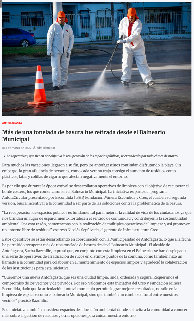Operativo de limpieza: Retiran más de una tonelada de basura del Balneario Municipal - (antofagasta.tv)