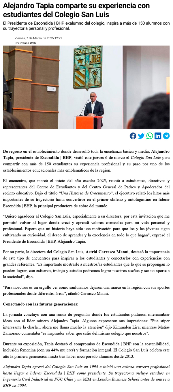 Presidente de Escondida | BHP ofreció charla a estudiantes del Colegio San Luis - (madero.cl)
