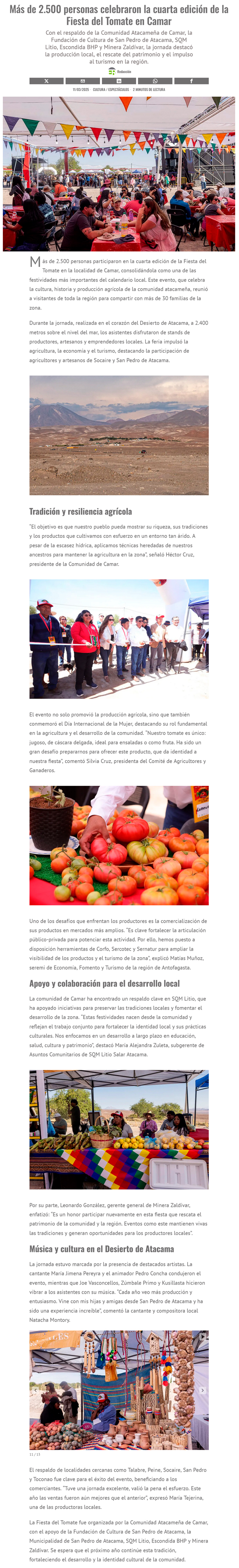 Más de 2.500 personas participaron en la Fiesta del Tomate en Camar en una celebración única de sabor, tradición y música - (redloa.cl)