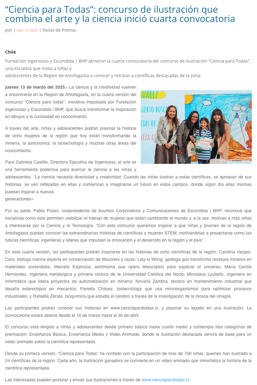 Fundación Ingeniosas y Escondida | BHP lanzan concurso de ilustración que combina el arte y la ciencia - (mch.cl)