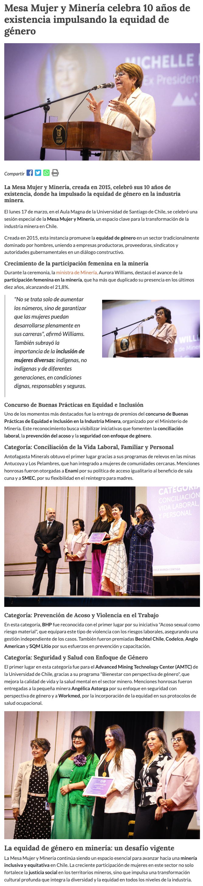 Gobierno celebra 10 años de la Mesa Mujer y Minería - (mch.cl)