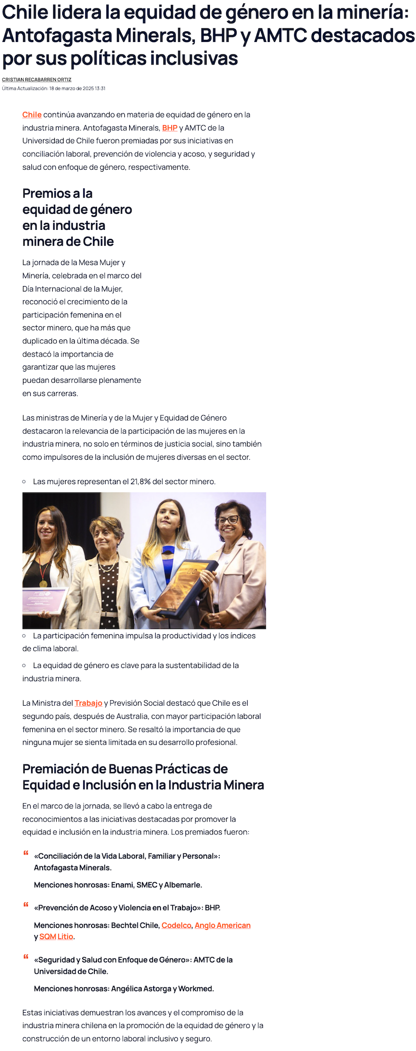 AMTC recibe reconocimiento de parte del Ministerio de Minería - (mch.cl)
