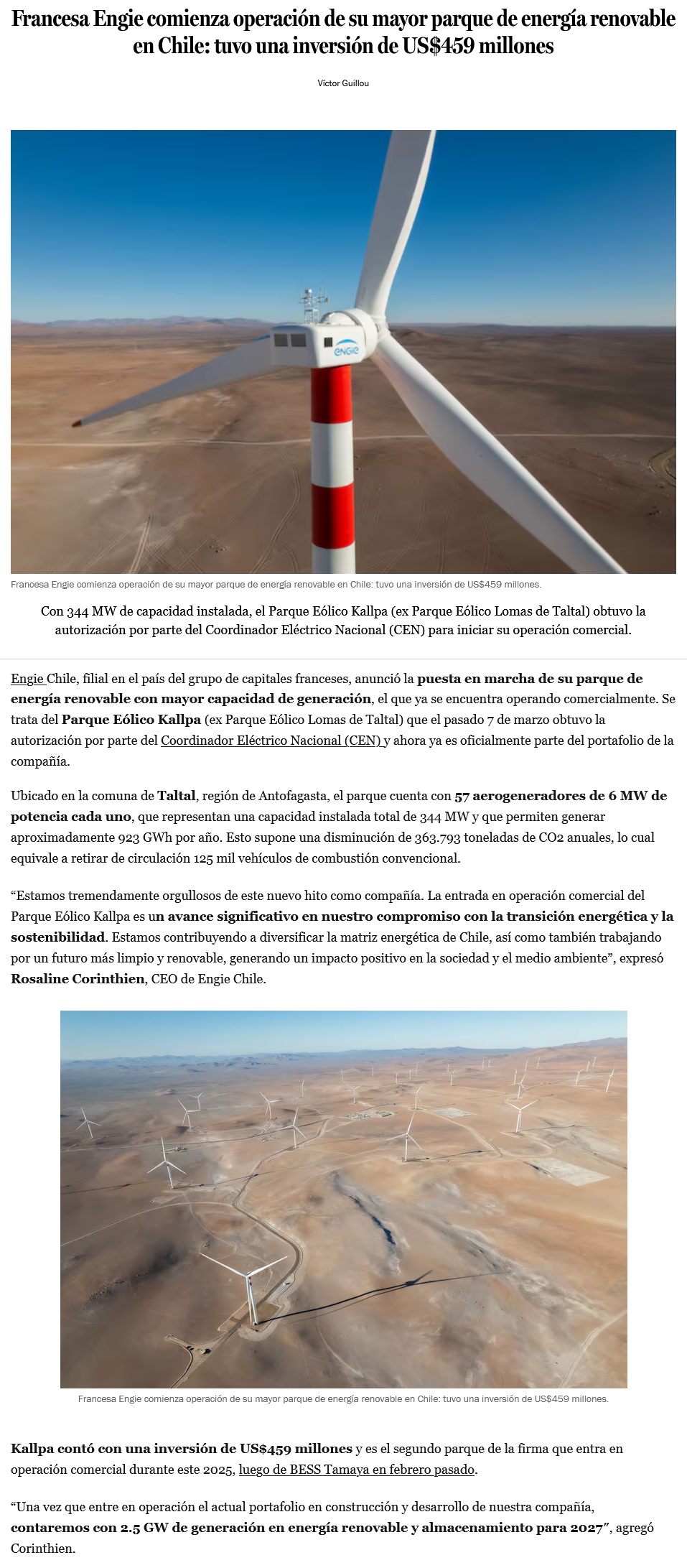 Engie comienza operación de su mayor parque de energía renovable - (Pulso)