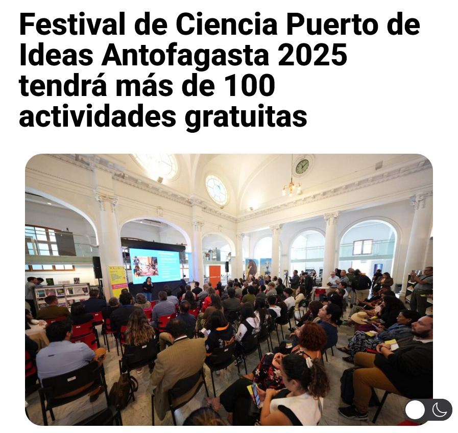 Festival de Ciencia Puerto de Ideas Antofagasta 2025 tendrá más de 100 actividades gratuitas - (cpcomunicaciones.cl)