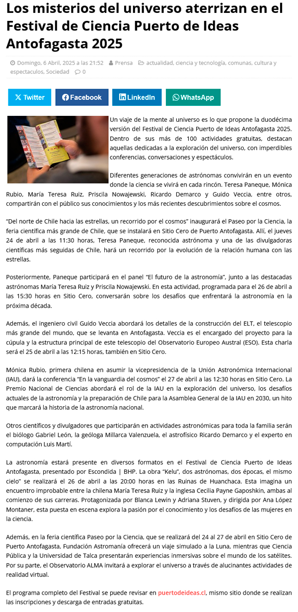 Los misterios del universo aterrizan en el Festival de Ciencia Puerto de Ideas Antofagasta 2025 - (regionesnoticias.cl)
