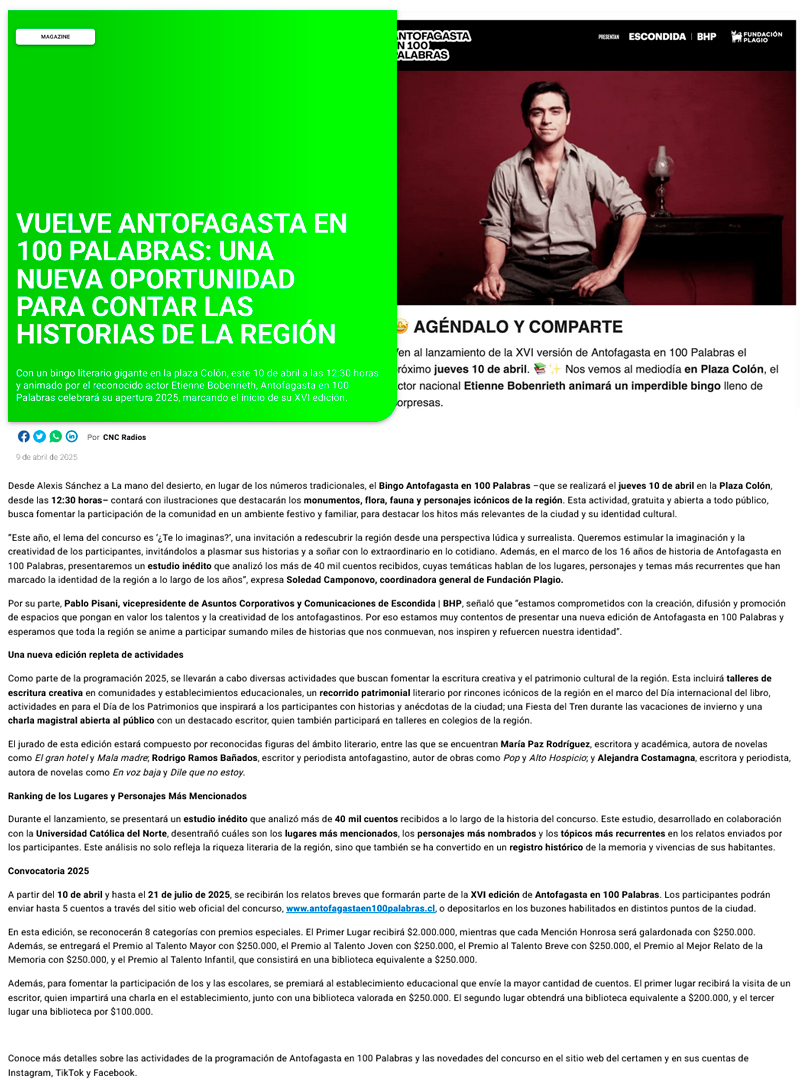Vuelve Antofagasta en 100 Palabras: una nueva oportunidad para contar las historias de la región - (canal95.cl)