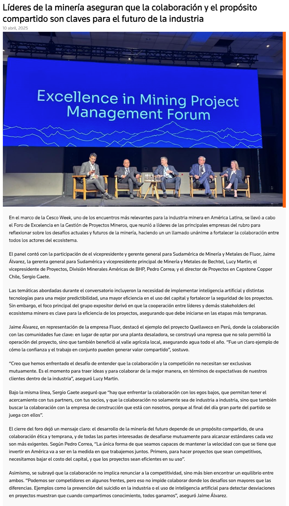 Líderes de la minería aseguran que la colaboración y el propósito compartido son claves para el futuro de la industria - (diarioangamos)