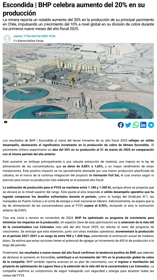 Resultados BHP: Escondida reporta aumento de 20% en producción - (timeline)