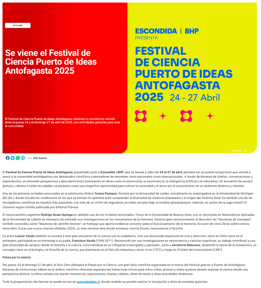 Se viene el Festival de Ciencia Puerto de Ideas Antofagasta 2025 - (fmplus.cl)