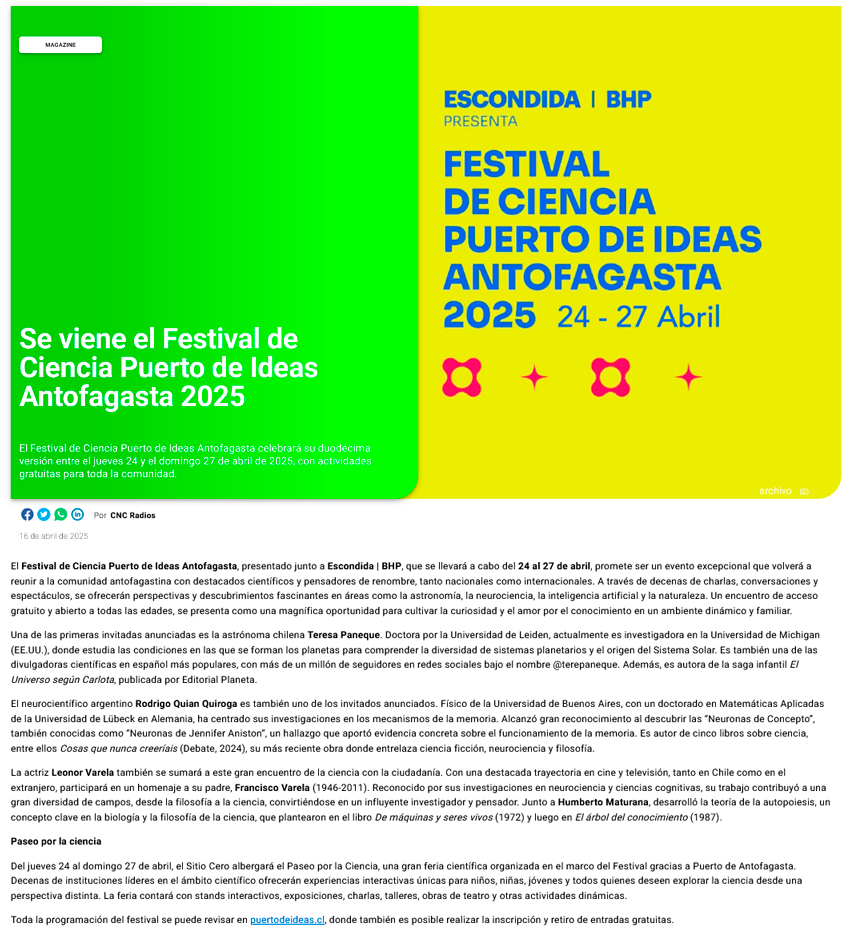 Se viene el Festival de Ciencia Puerto de Ideas Antofagasta 2025 - (fmquiero.cl)