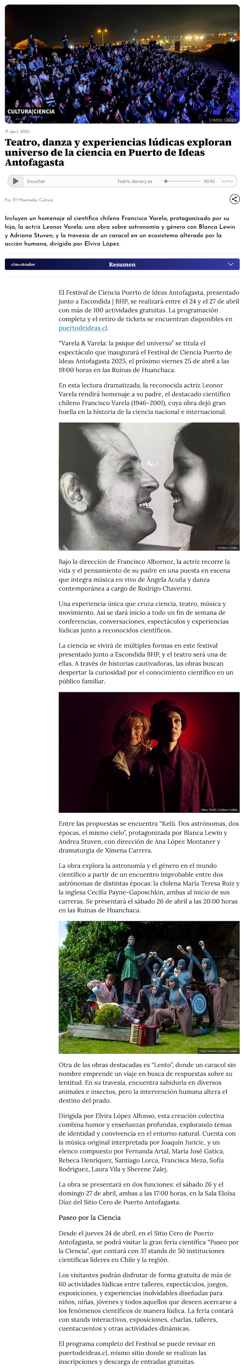 Teatro, danza y experiencias lúdicas exploran el universo de la ciencia en Puerto de Ideas Antofagasta 2025 - (cpcomunicaciones.cl)