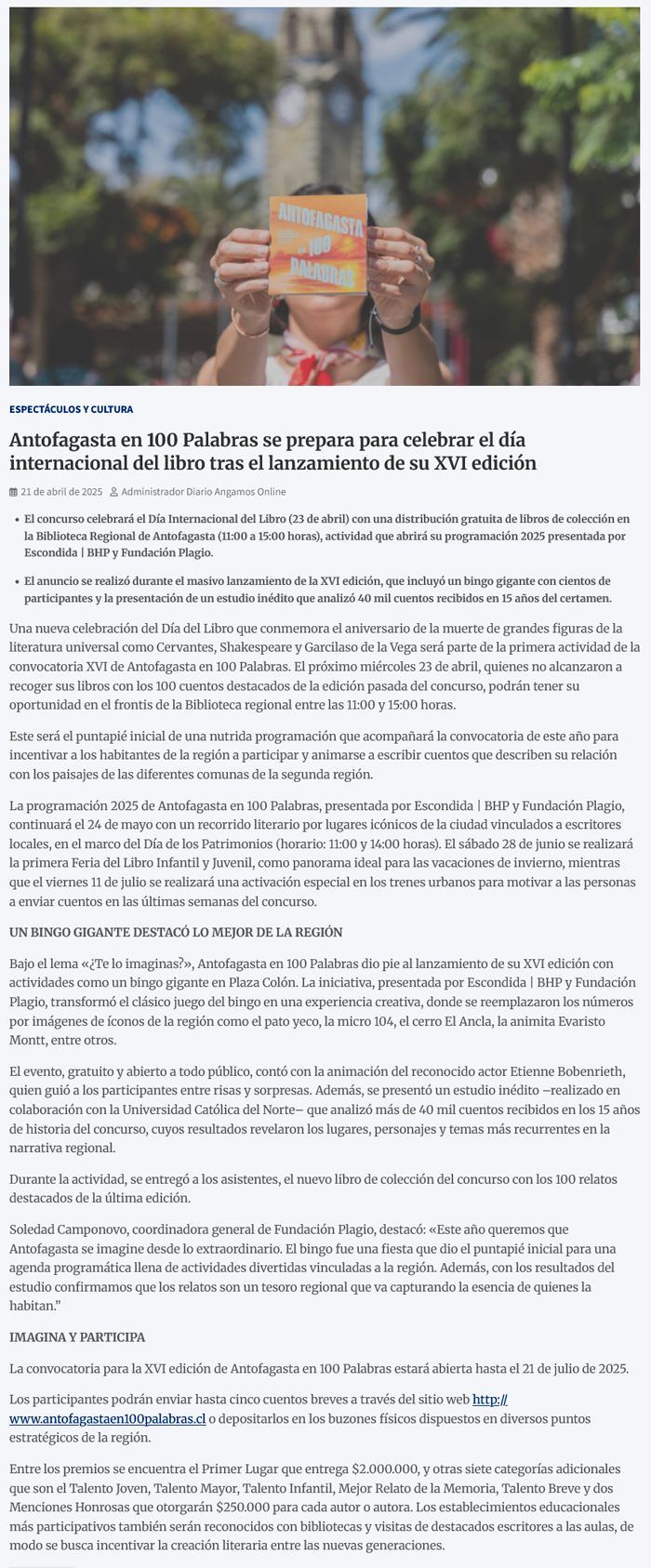 Antofagasta en 100 Palabras se prepara para celebrar el día internacional del libro tras el lanzamiento de su XVI edición - (termometro.cl)