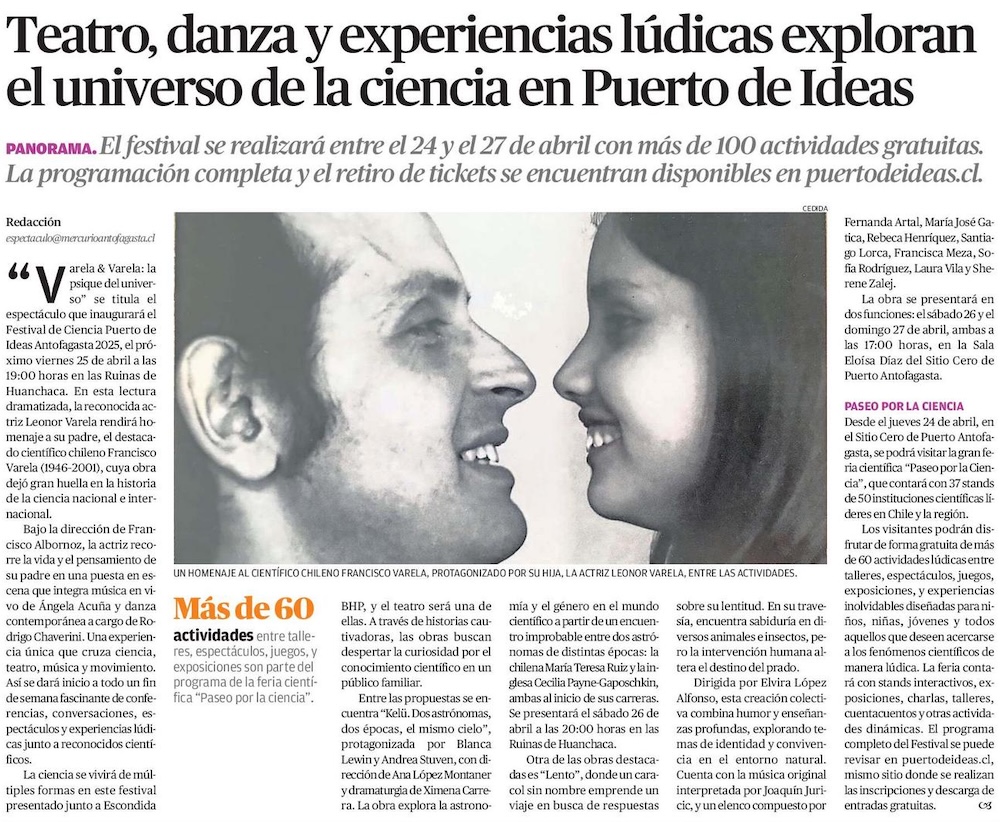 Teatro, danza y experiencias lúdicas exploran el universo de la ciencia en Puerto de Ideas - (El Mercurio de Antofagasta)