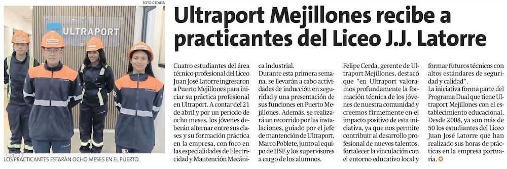 Puerto Mejillones: Estudiantes del Liceo Juan José Latorre iniciaron su práctica en Ultraport - (mundomaritimo)