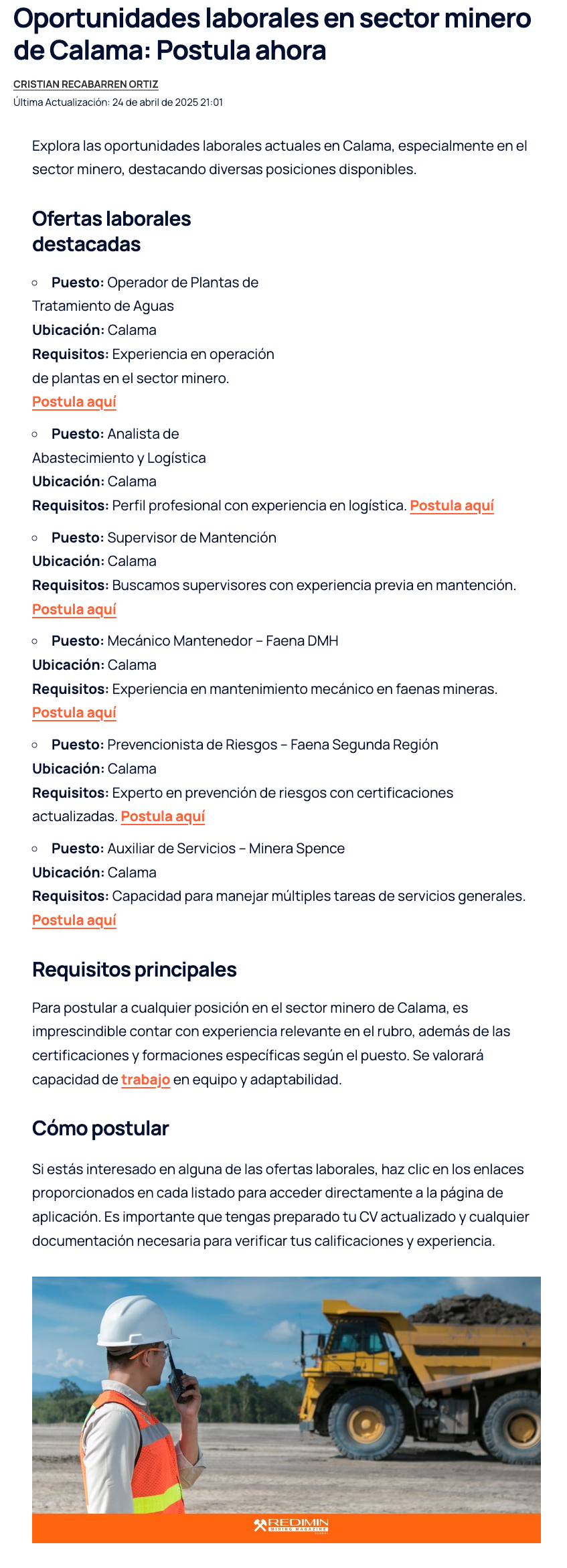 Oportunidades laborales en minería Chile: ¡Postula ahora! - (redimin)
