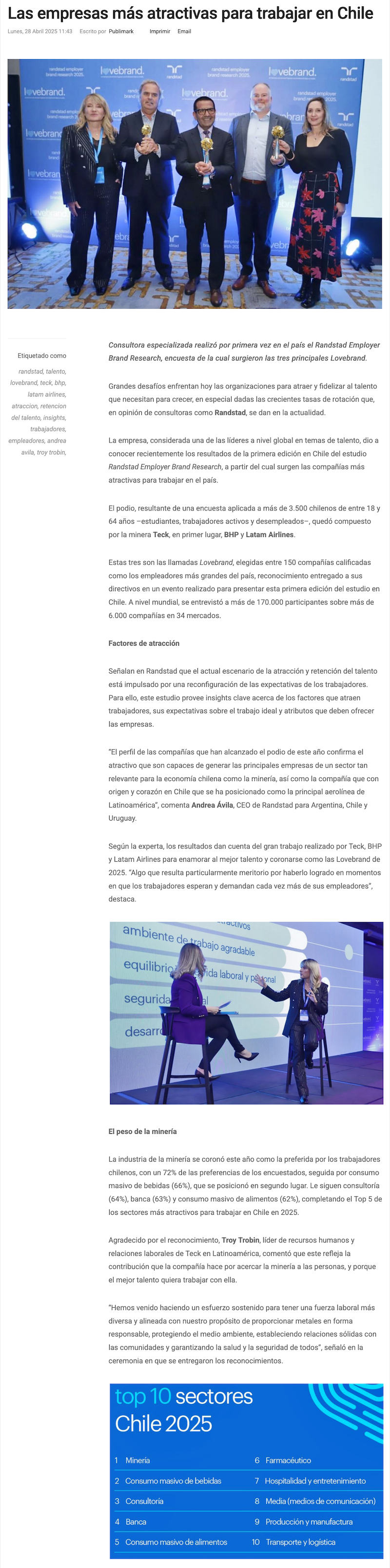 TECK y BHP son reconocidas como las empresas más atractivas para trabajar en Chile - (electromineria.cl)