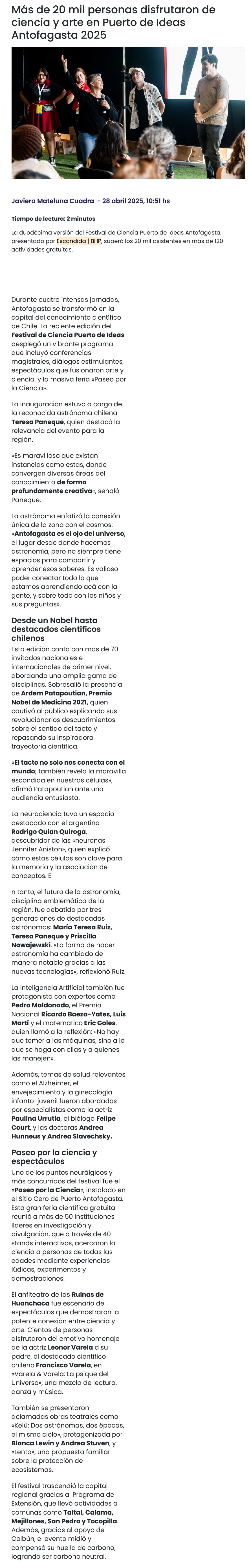 Más de 20 mil personas reunió el Festival de Ciencia Puerto de Ideas 2025 - (El Mostrador)