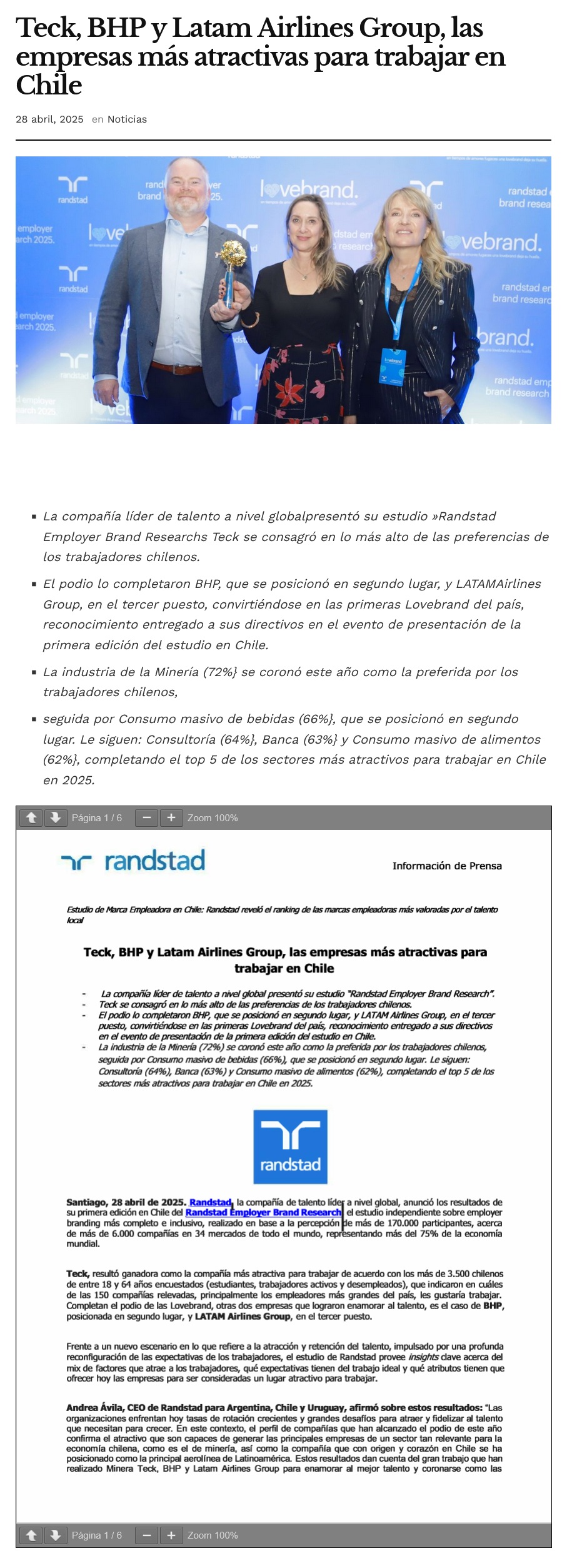 Teck es reconocida como la empresa más atractiva para trabajar en Chile - (nuevaminería online)