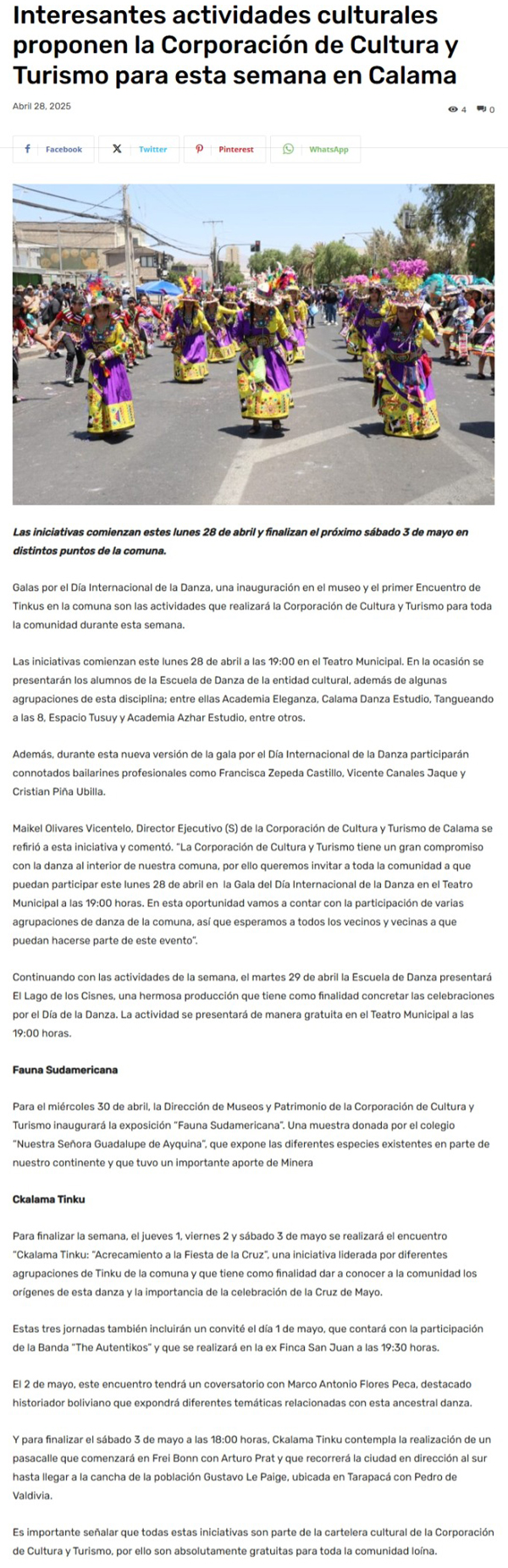 Calama celebra intensa semana cultural con actividades gratuitas para toda la comunidad - (madero.cl)