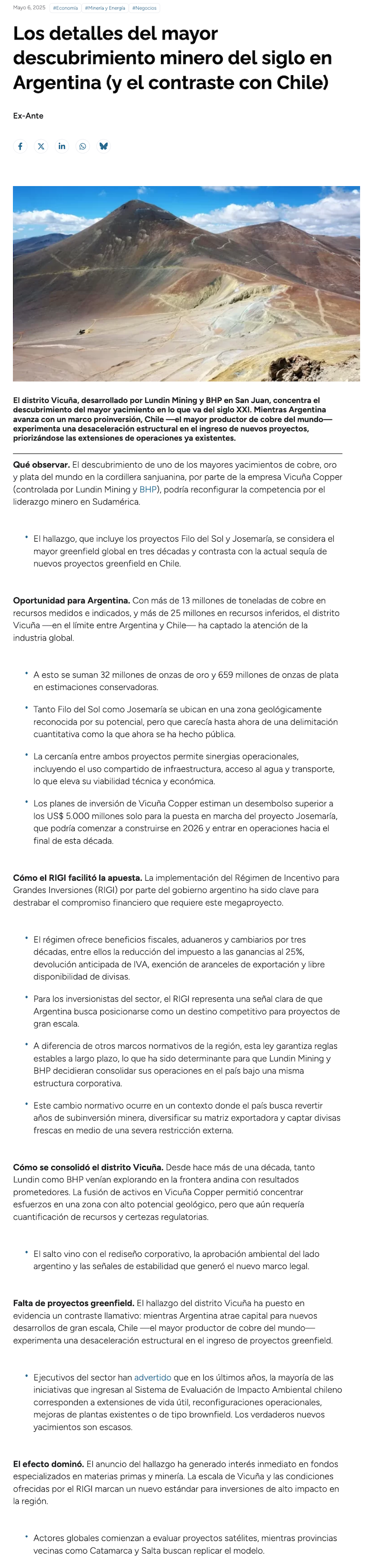 Los detalles del mayor descubrimiento minero del siglo en Argentina (y el contraste con Chile) - (t13.cl)