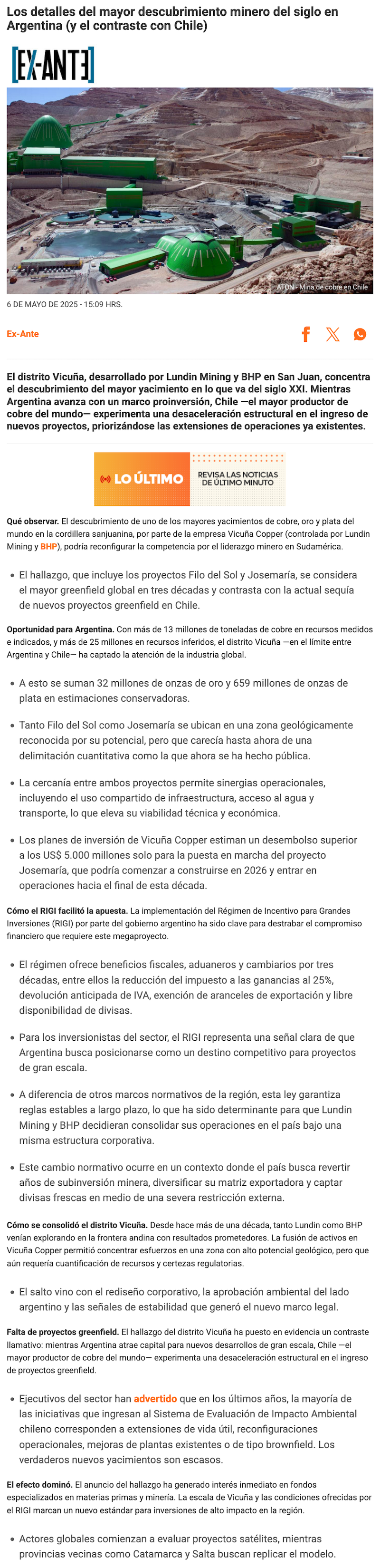 Los detalles del mayor descubrimiento minero del siglo en Argentina (y el contraste con Chile) - (ex-ante.cl)