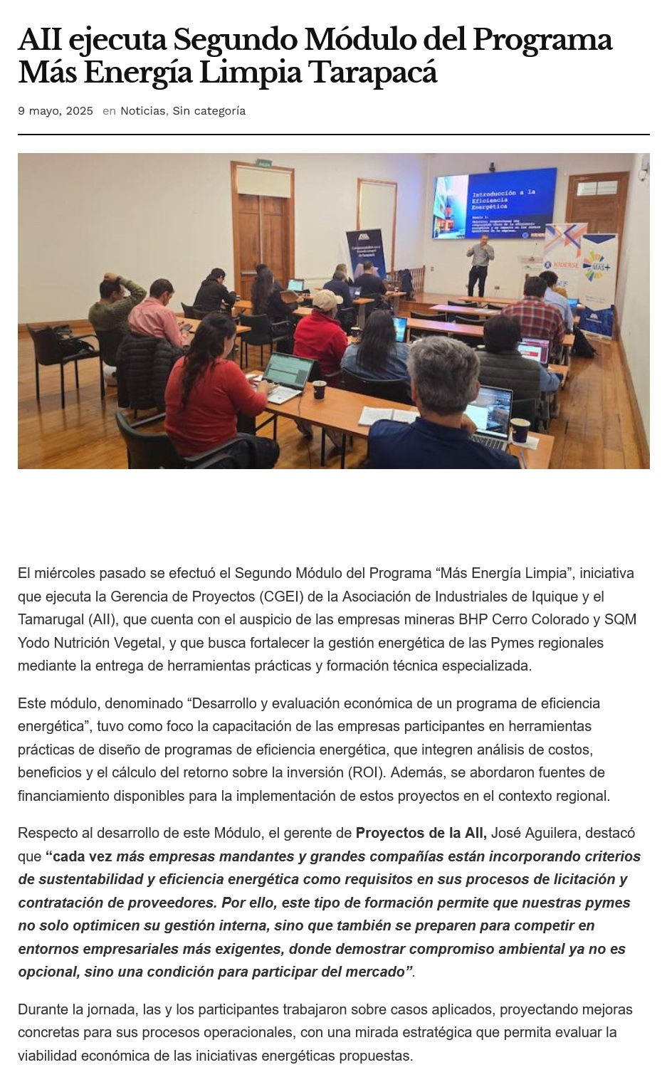 AII impulsa formación técnica para Pymes de Tarapacá con Apoyo de BHP y SQM - (norteonline.cl)