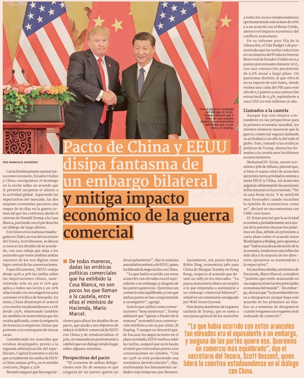 EE.UU. y China sellan tregua arancelaria, cobre repunta y Chile alista nueva fase de negociación - (El Mercurio de Santiago)