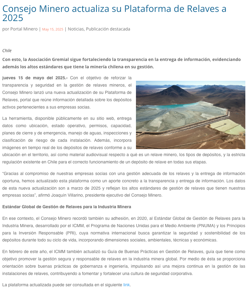 Consejo Minero actualiza su Plataforma de Relaves a 2025 - (Nostálgica Online)