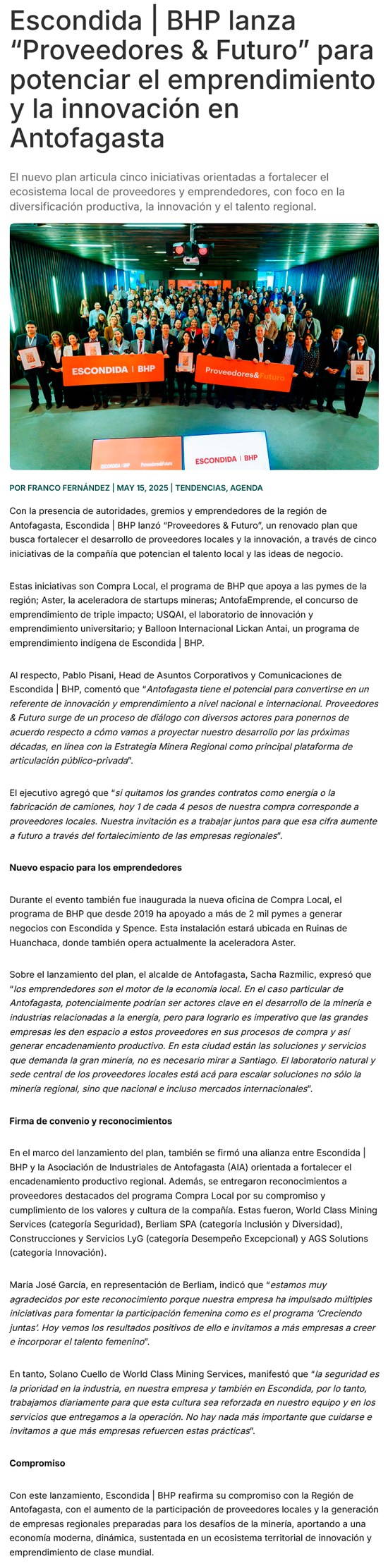 Escondida | BHP presenta plan para el desarrollo de proveedores con nuevas oficinas de Compra Local - (termometro.cl)