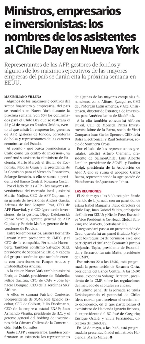 Ministros, empresarios e inversionistas: los nombres de los asistentes al Chile Day en Nueva York - (La Tercera Online)