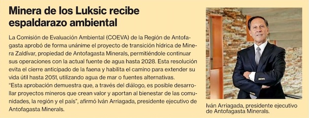 Zaldívar asegura su extensión operacional por 26 años tras 687 días de evaluación ambiental - (El Mercurio de Antofagasta)