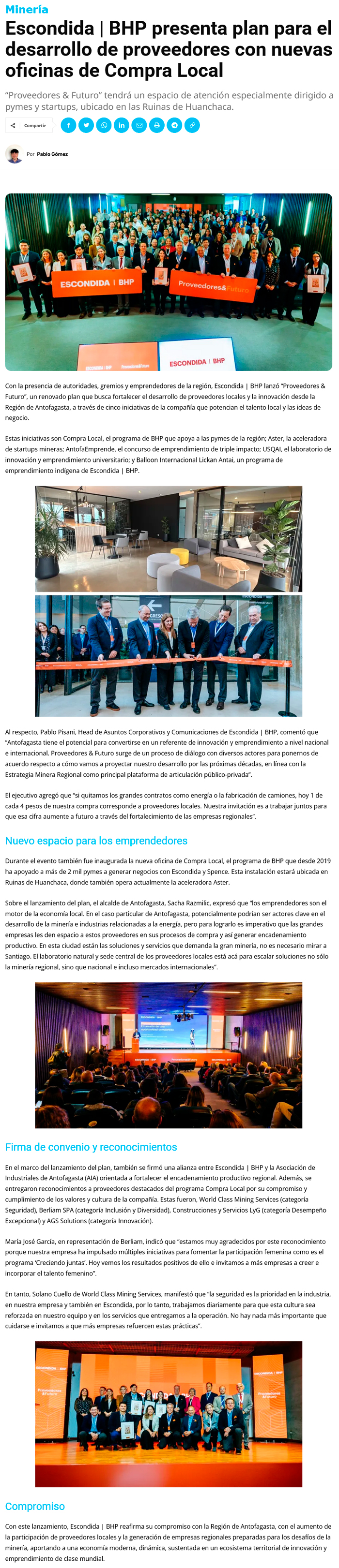Escondida | BHP presenta plan para el desarrollo de proveedores con nuevas oficinas de compra local - (region2)