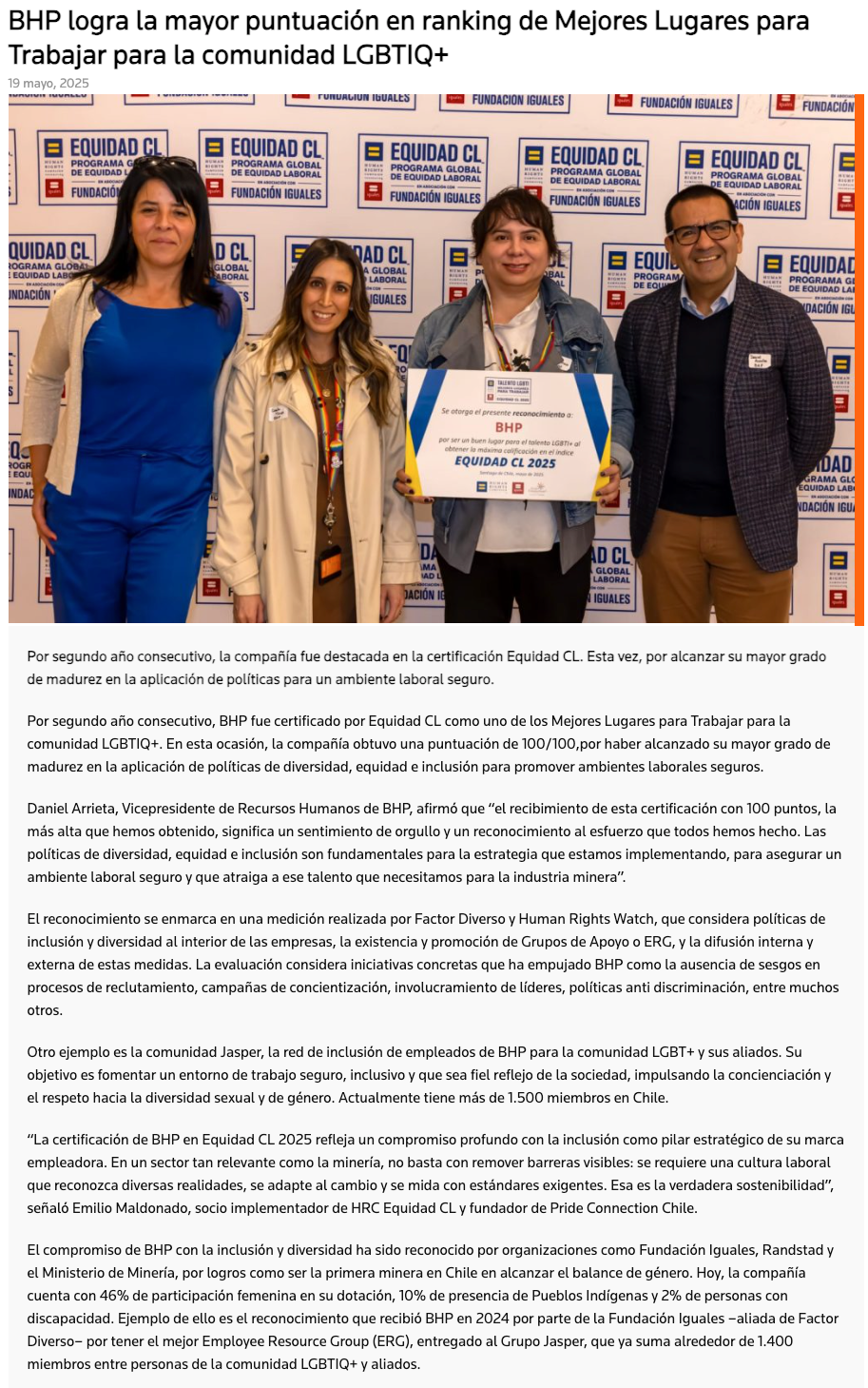 BHP es uno de los mejores lugares para trabajar para la comunidad LGBTIQ+ - (revistacrisol.cl)