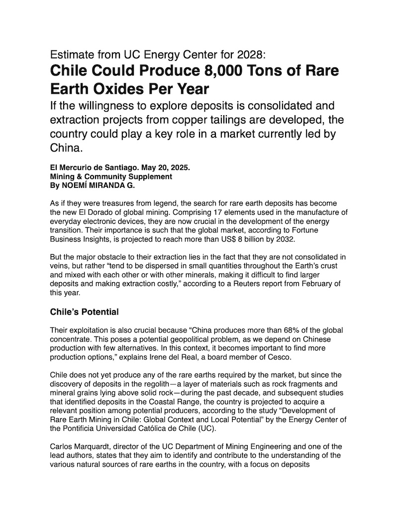 Codelco y Rio Tinto esperan sellar en 2026 acuerdo para producir litio en Maricunga - (El Mercurio de Santiago)
