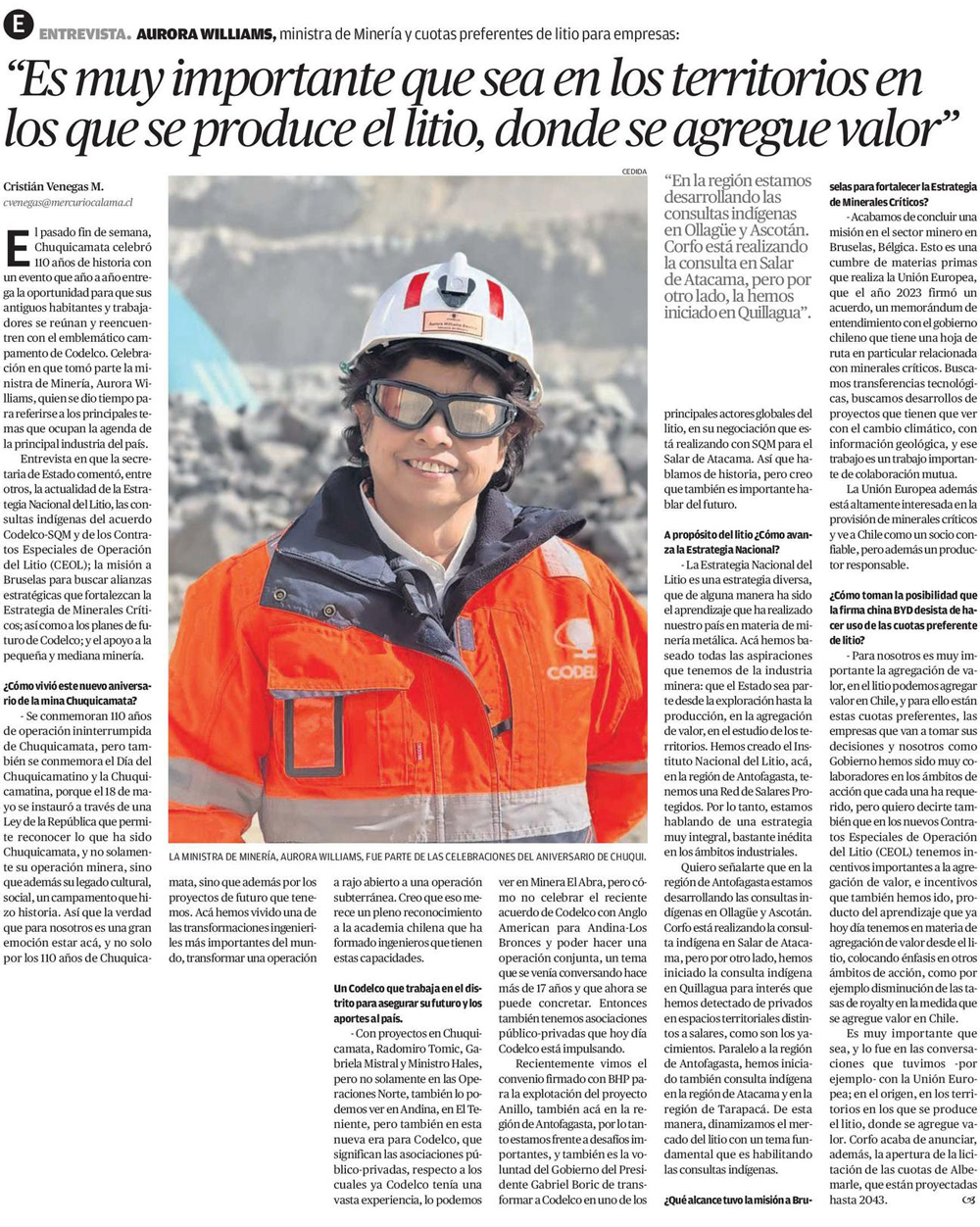 "Es muy importante que sea en los territorios en los que se produce el litio, donde se agregue valor" - (El Mercurio de Calama)