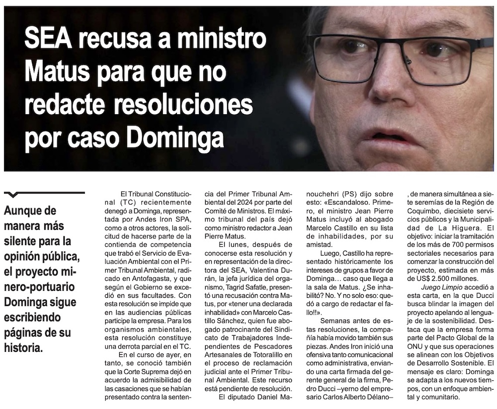 Corte Suprema alista fallo por Dominga: ministros llegan a acuerdo con señales negativas para el Gobierno - (Diario Financiero)
