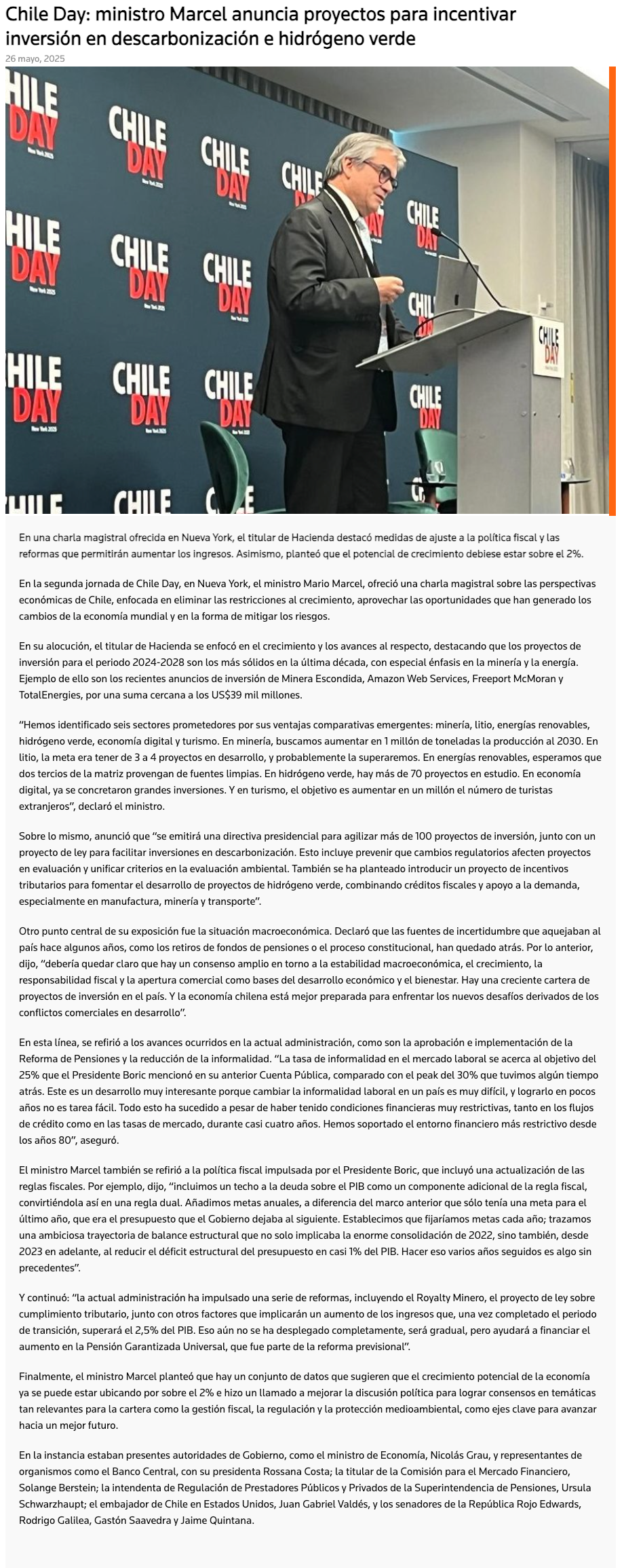 Chile Day 2025 en Nueva York: Gobierno presenta estrategia para liderar en minería verde y energías renovables - (redimin)