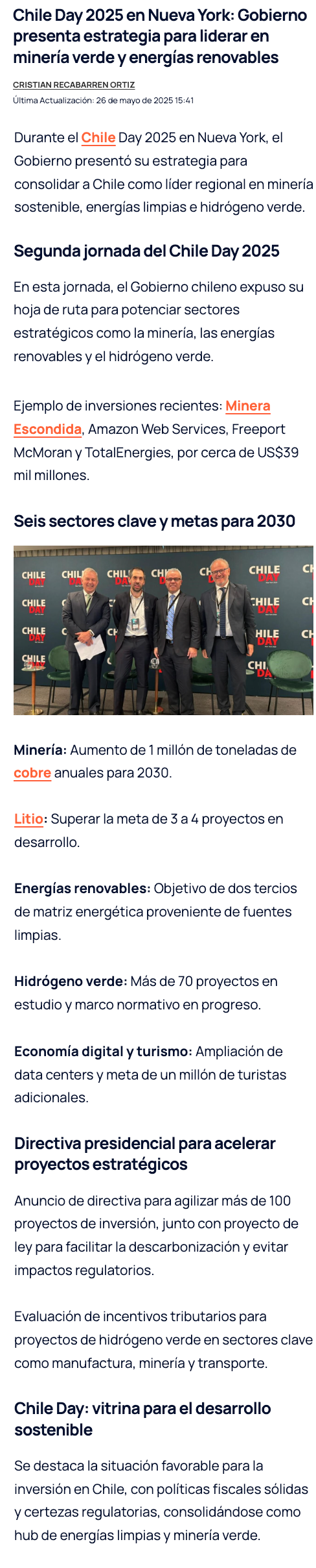 Chile Day: ministro Marcel anuncia proyectos para incentivar inversión en descarbonización e hidrógeno verde - (nuevaminería online)