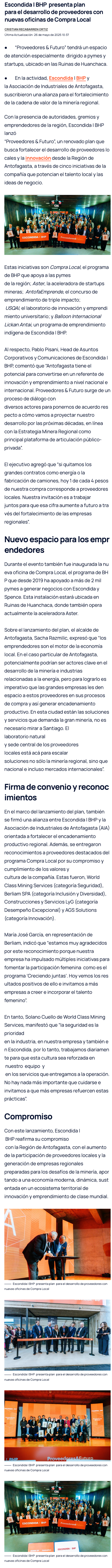 Escondida | BHP lanza plan “Proveedores & Futuro” para potenciar a pymes y emprendedores de Antofagasta - (mineriayfuturo.cl)