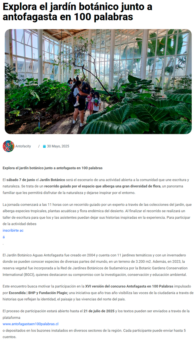 Explora el Jardín Botánico junto a Antofagasta en 100 palabras - (antofagastaonline.cl)