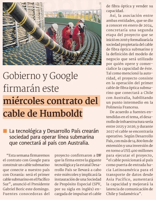 Contrato con Google: detalles del cable submarino de fibra óptica que unirá Valparaíso con Sídney - (Las Últimas Noticias)