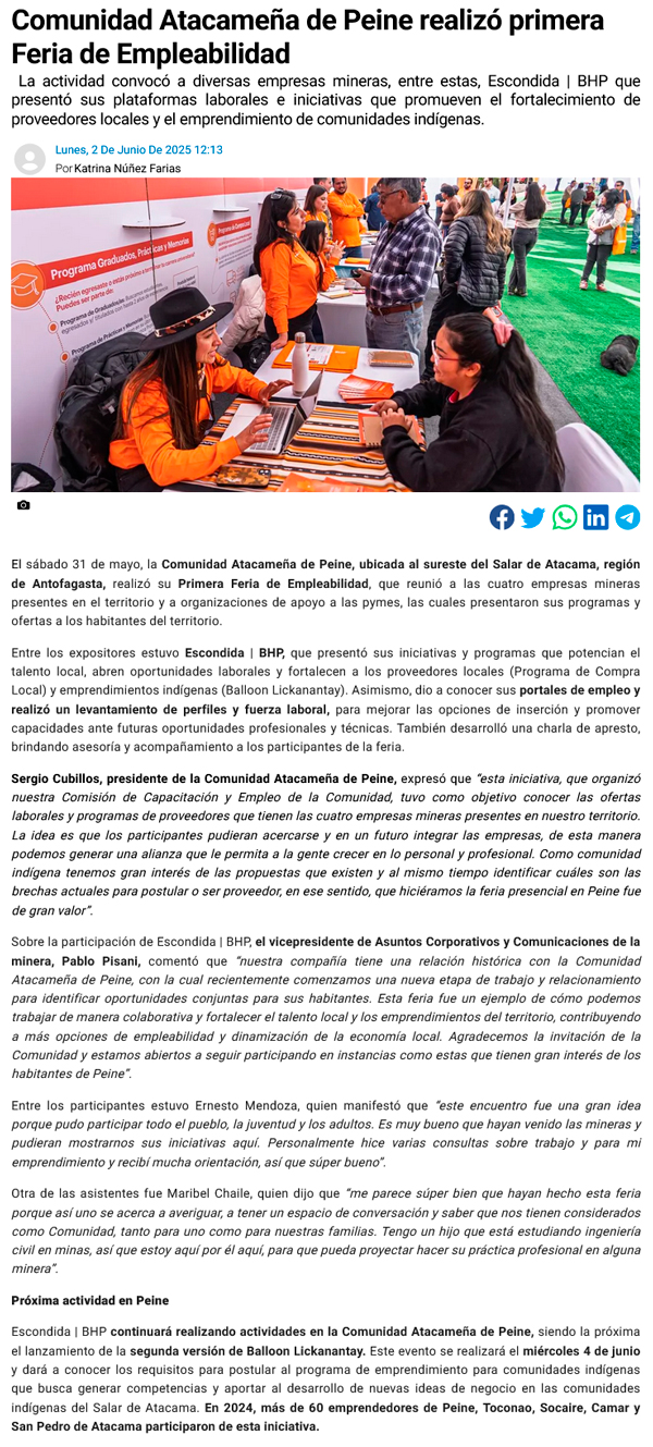 Comunidad Atacameña de Peine realizó primera Feria de Empleabilidad para promover oportunidades de trabajo y emprendimiento - (timeline)