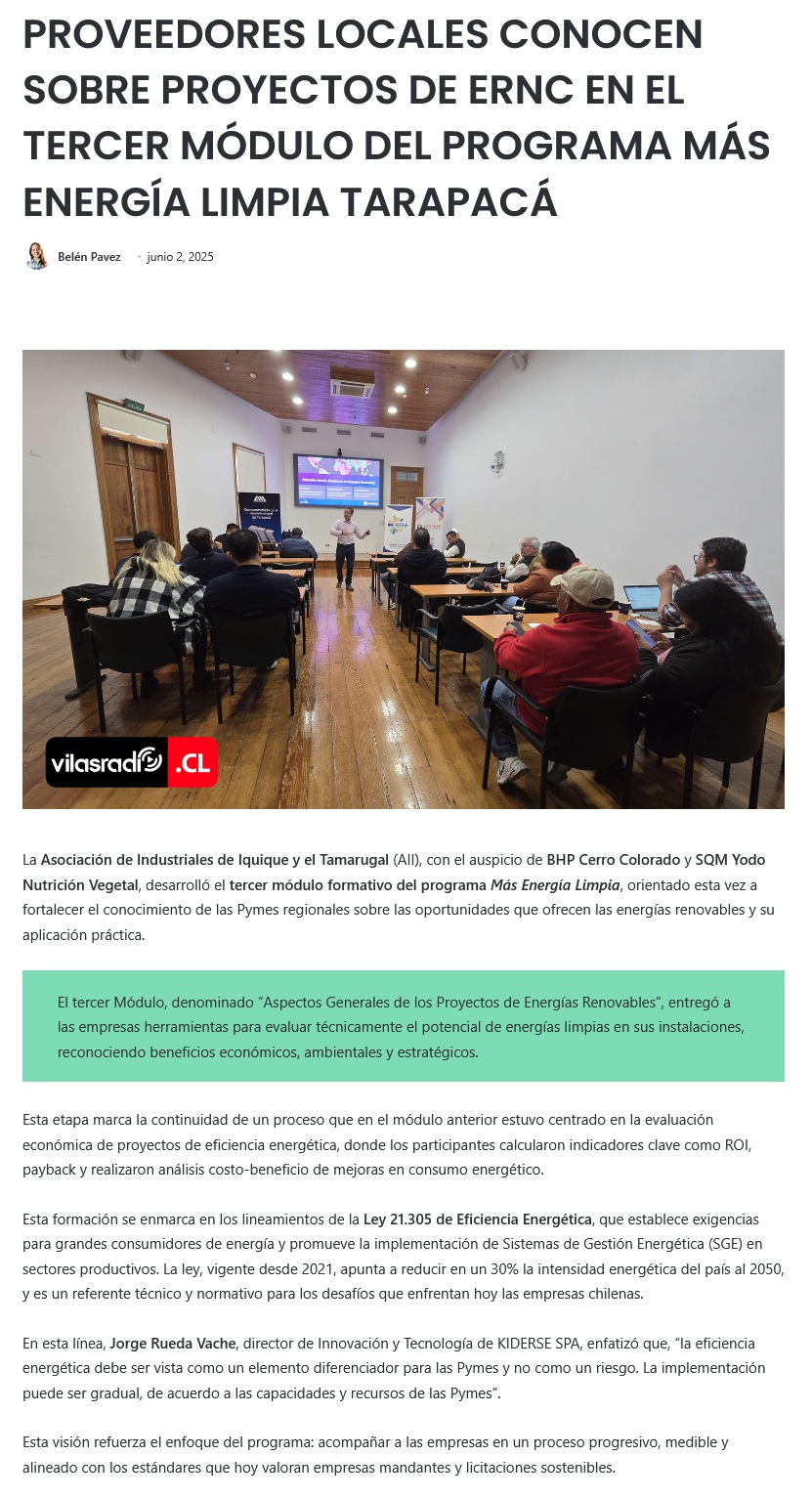 AII refuerza capacidades de empresas locales con formación en ERNC - (norteonline.cl)