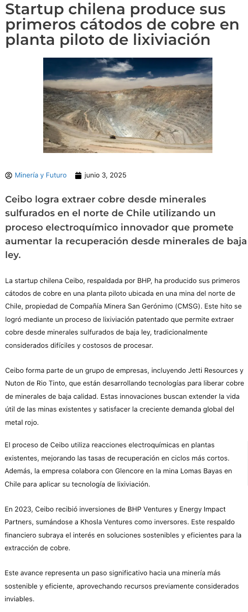 Startup chilena apoyada por BHP inicia producción de cátodos en planta de lixiviación - (DF Online)
