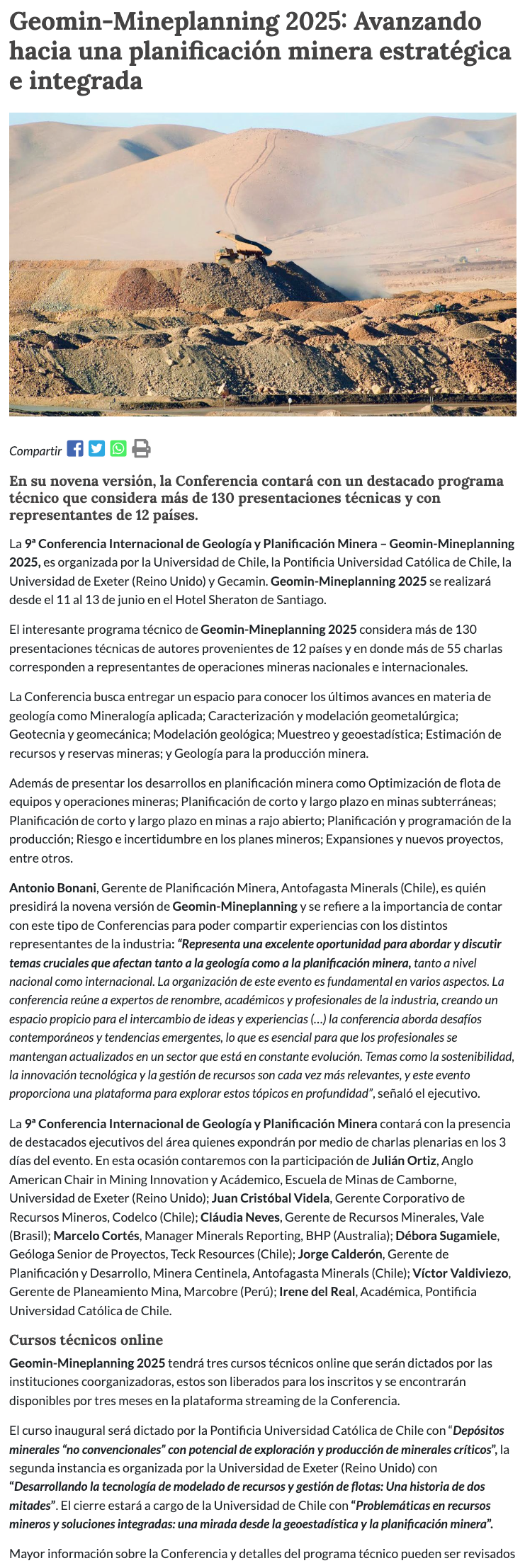 Geomin-Mineplanning 2025: Avanzando hacia una planificación minera estratégica e integrada - (portalinnova.cl)