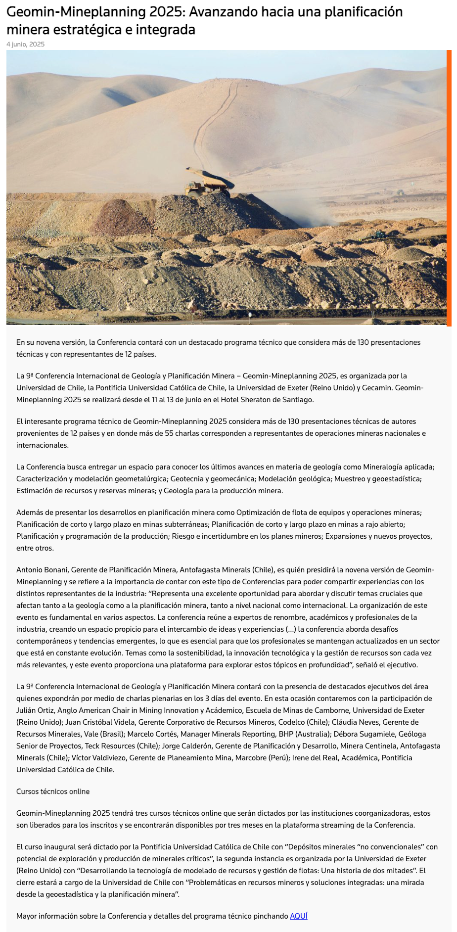 Geomin-Mineplanning 2025: Avanzando hacia una planificación minera estratégica e integrada - (portalinnova.cl)