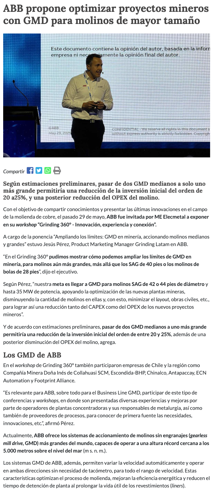 ABB propone optimizar proyectos mineros con GMD para molinos de mayor tamaño - (portalminero)