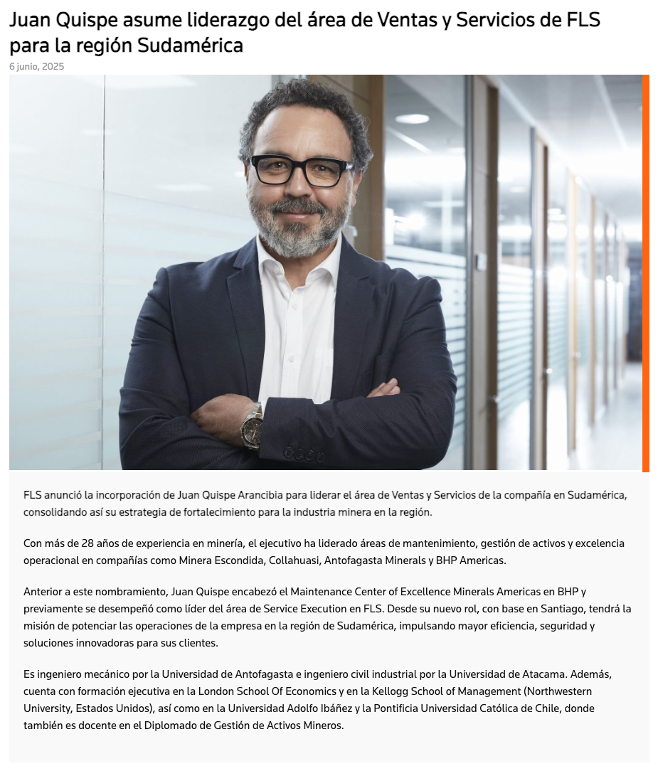FLS anuncia al nuevo líder del área de Ventas y Servicios para Sudamérica - (mch.cl)